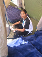 Click on any thumbnail image to view a larger image. The new picnic shelter with water and electricity was a nice enhancement for the campsite - no tables or canopies to se-up and take down, and no trouble finding a place to plug in a coffee pot or music player. Jesus from the Iroquois joined us in the evenings with his kids, and was the referee for several of the kids games. The biggest activity, as usual, was scounting the area to find things to throw into the fire. Luckily we had plenty of parental supervision. We also went sifting for sharks' teeth, and as always, found quite a few.